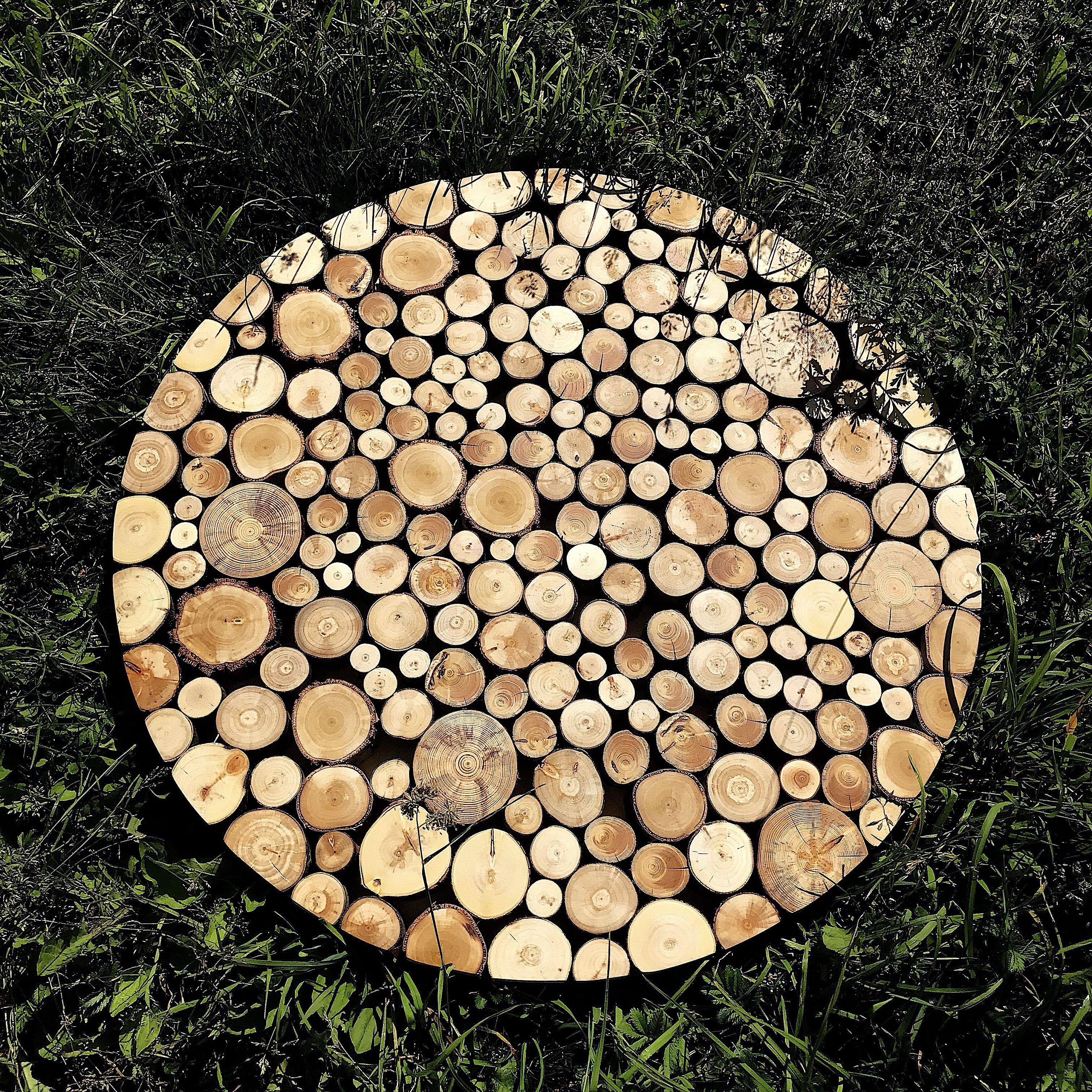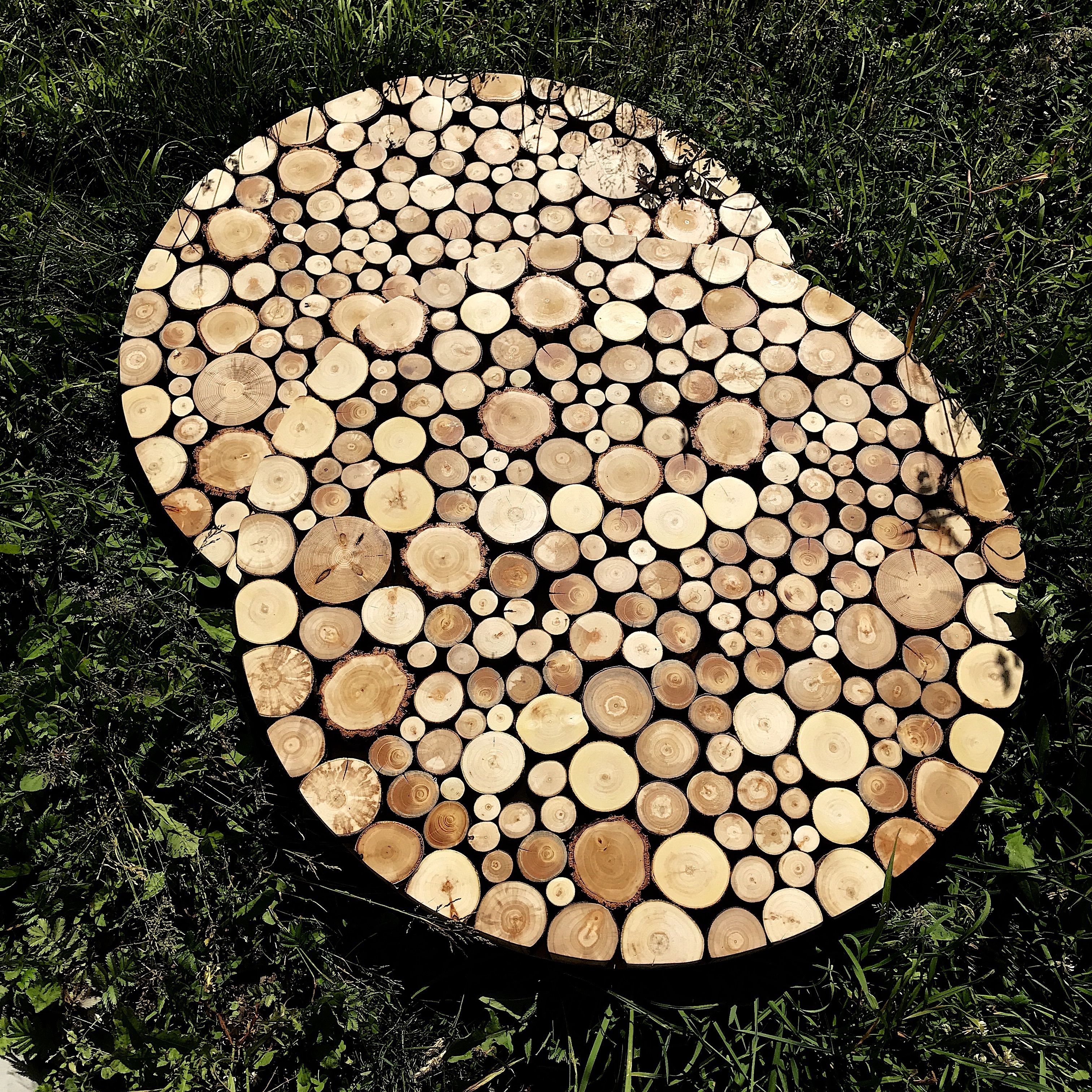 Панно из пеньков на фанерной основе. Диаметр от 50см (может быть любого размера). Можно спользовать как столешницу под стекло. Использованы пеньки березы, дуба, липы, осины.