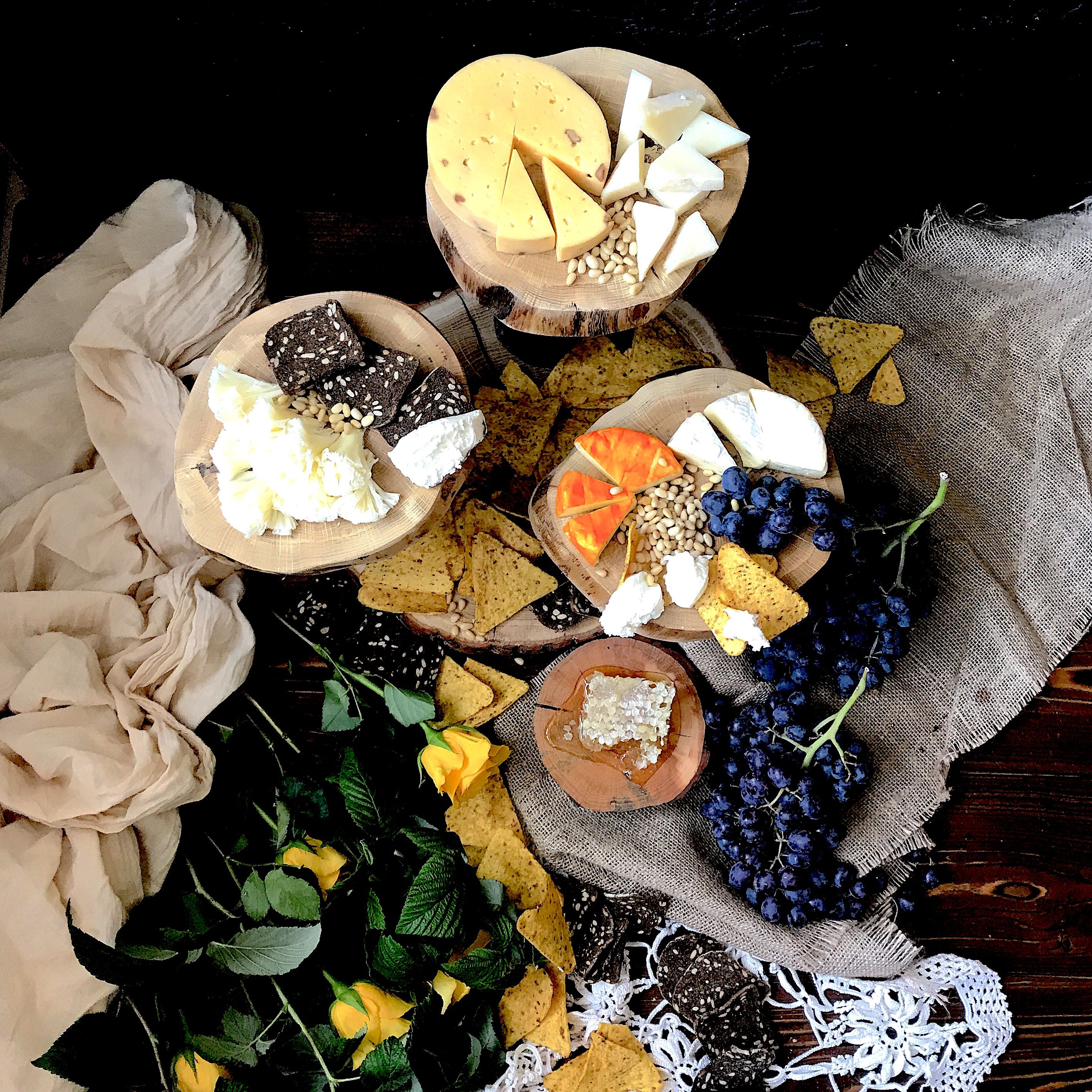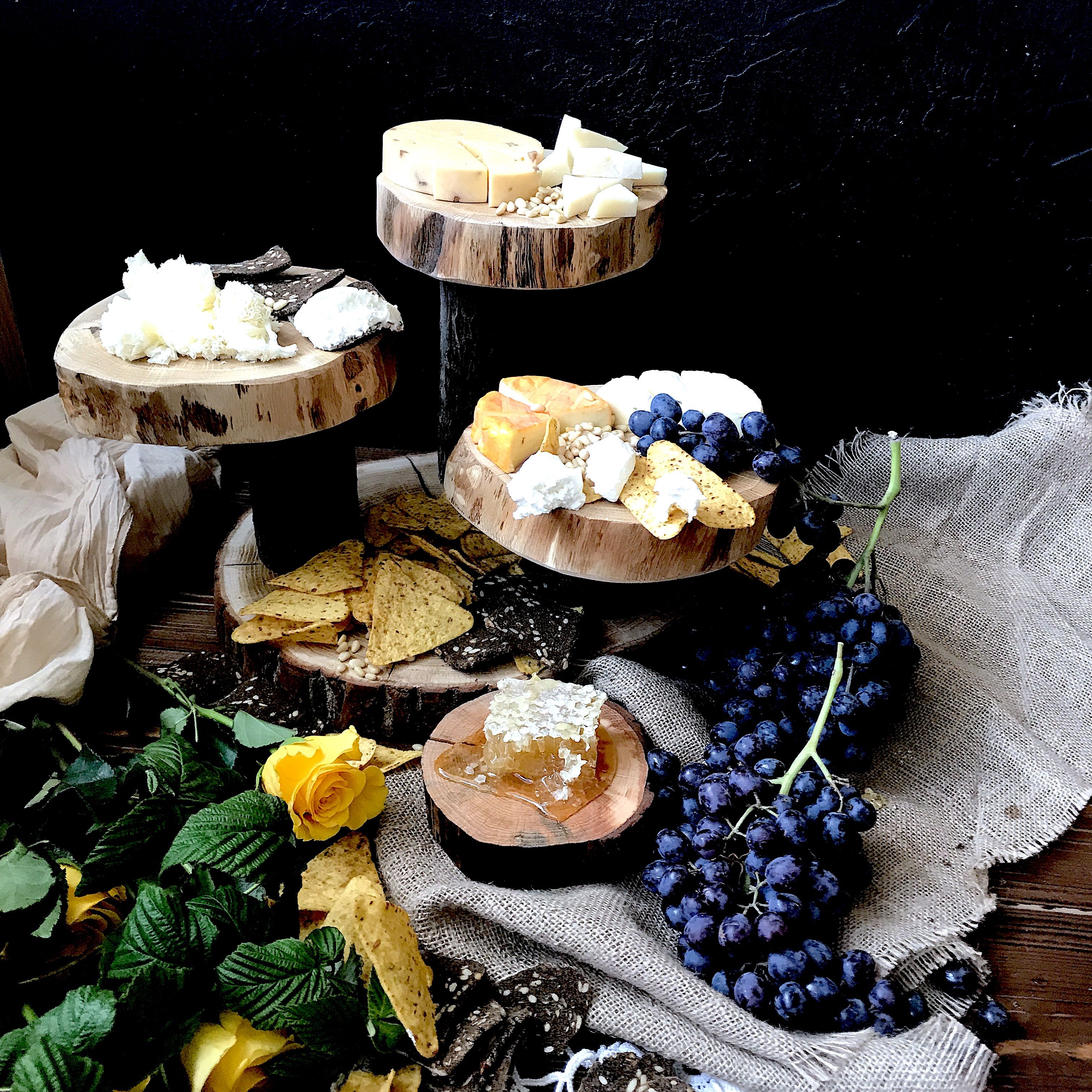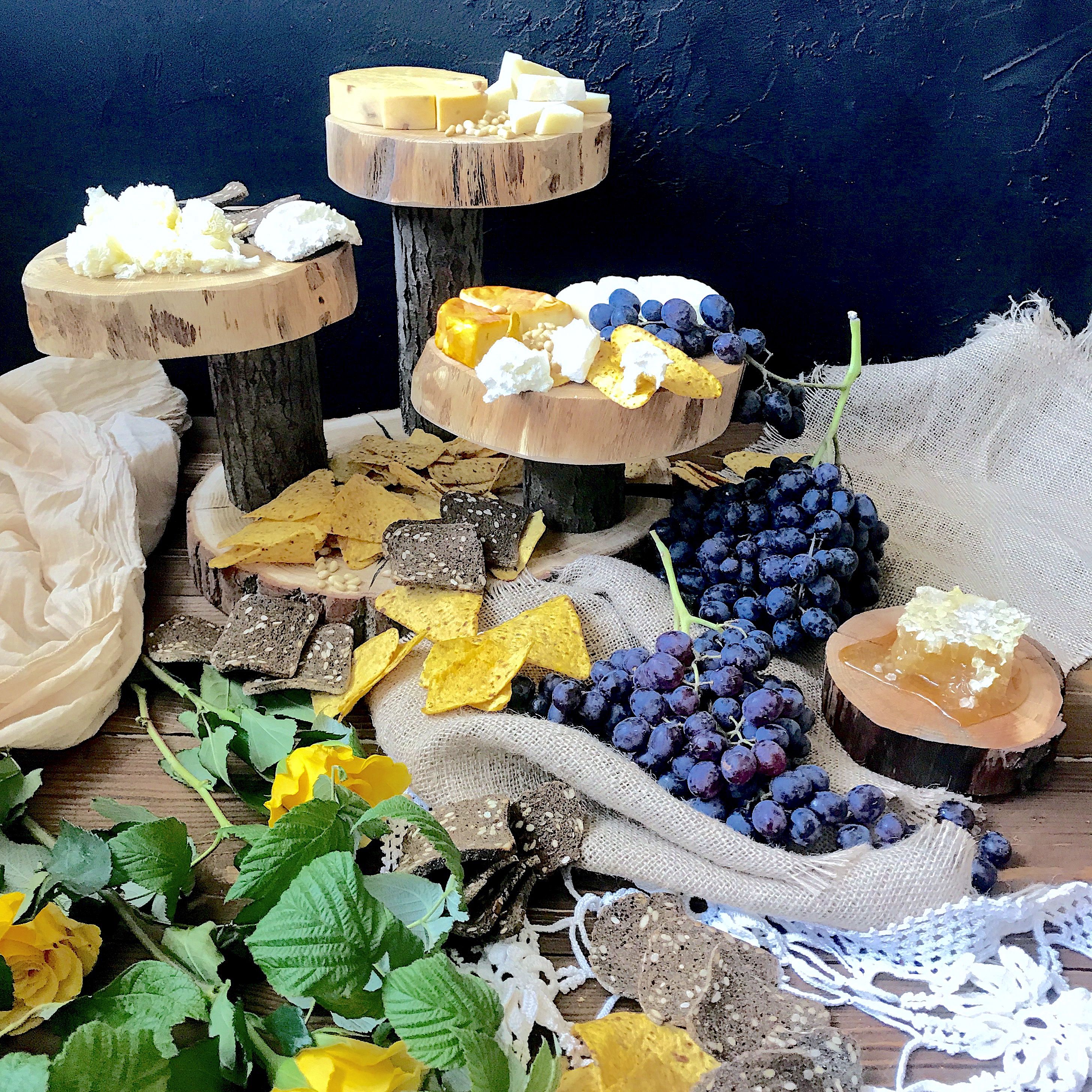 Подставка из дуба с тремя площадками для оформления шведских столов, кондитеских витрин, флористических композиций и любых других вариантов подачи.