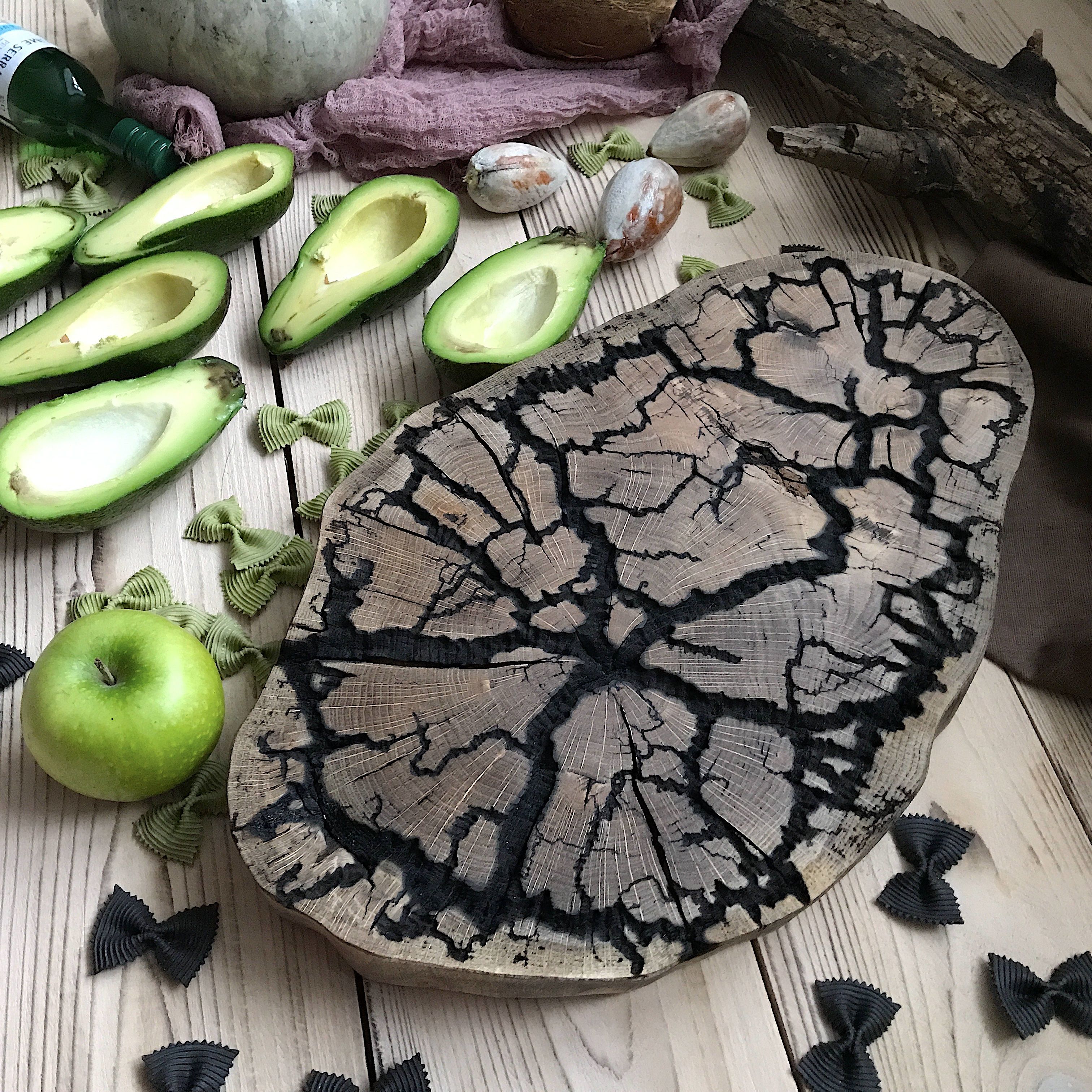 Спил дуба с декоративным прожигом, шлифовкой и финишным покрытием. Диаметр 30-40см., толщина 4см. Только на заказ, от 5шт.