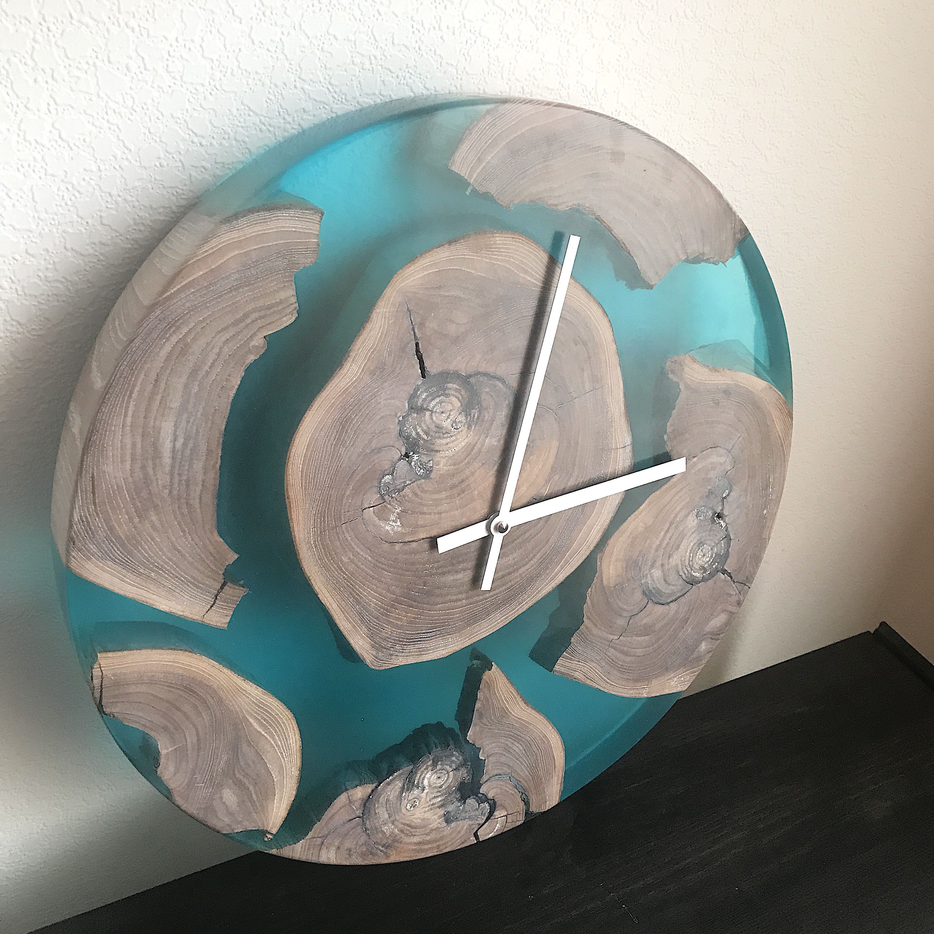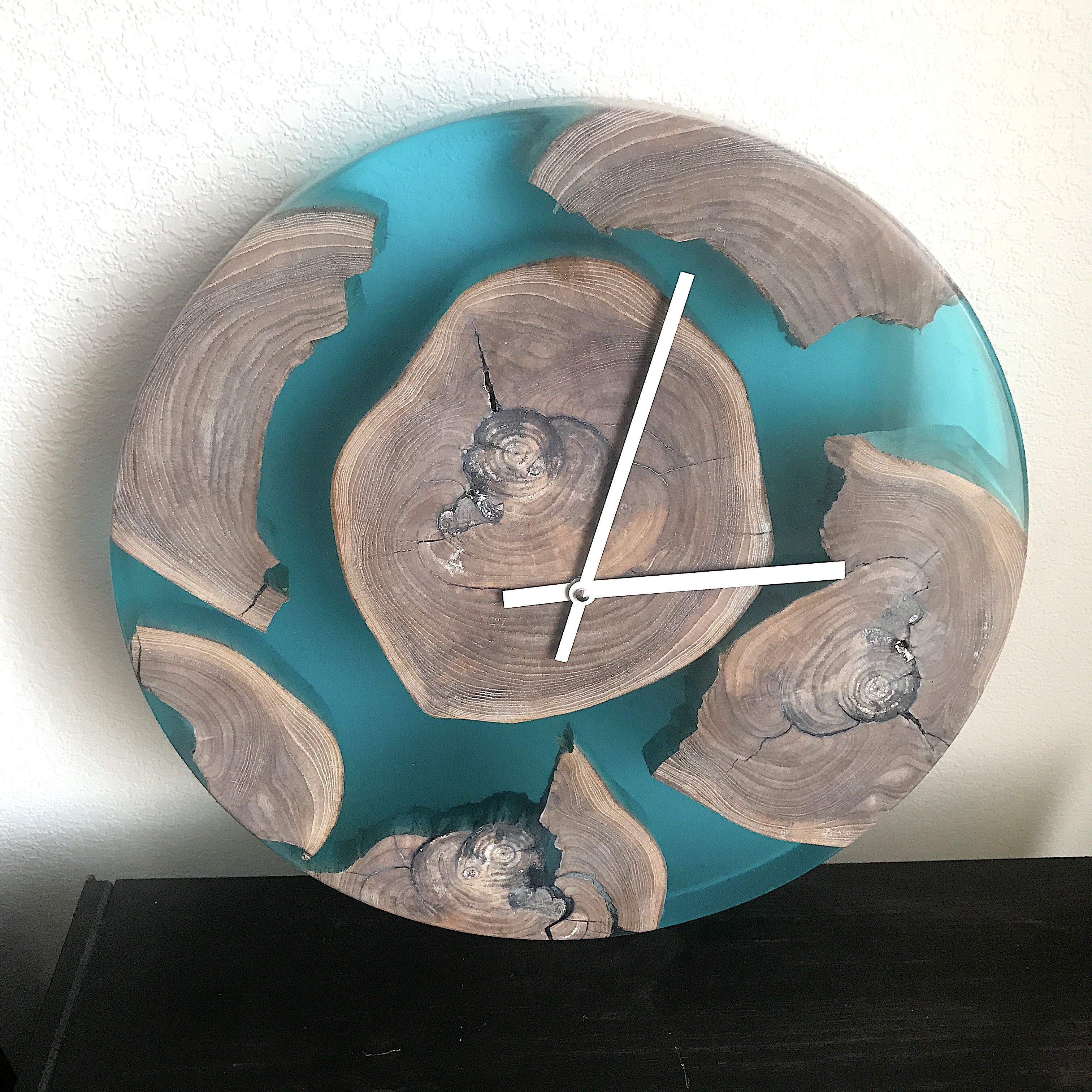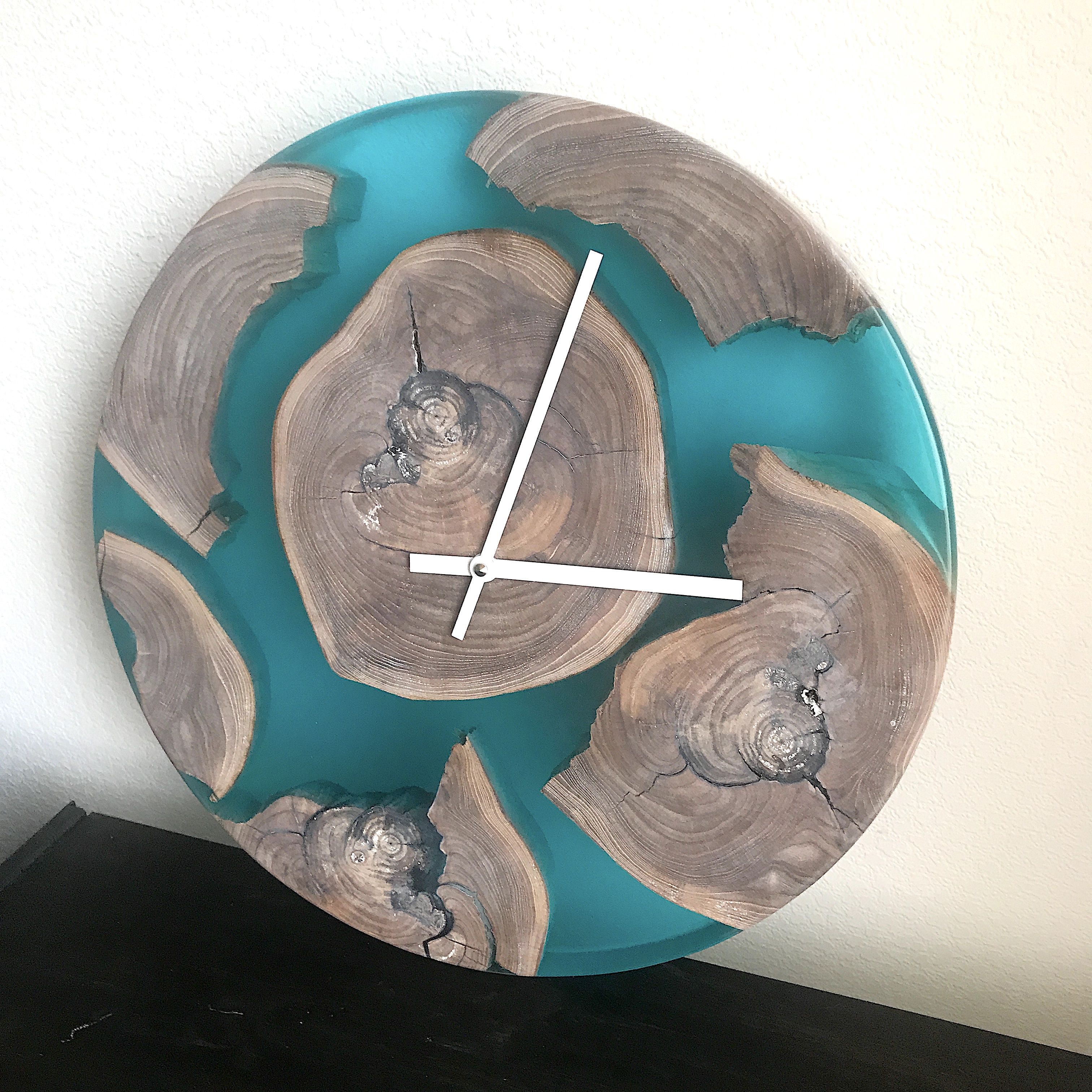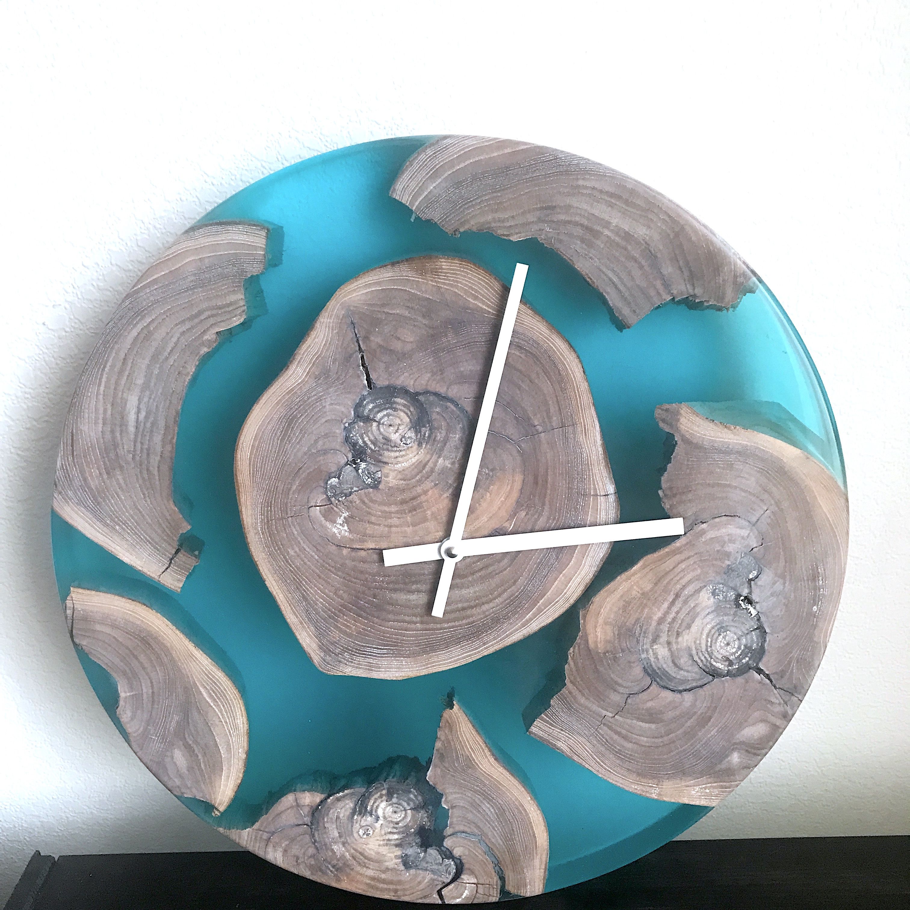 Часы из спилов дерева и эпоксидной смолы. Диаметр 50см. Возможно индивидуальное изготовление с различным наполнением и цветовой гаммы.