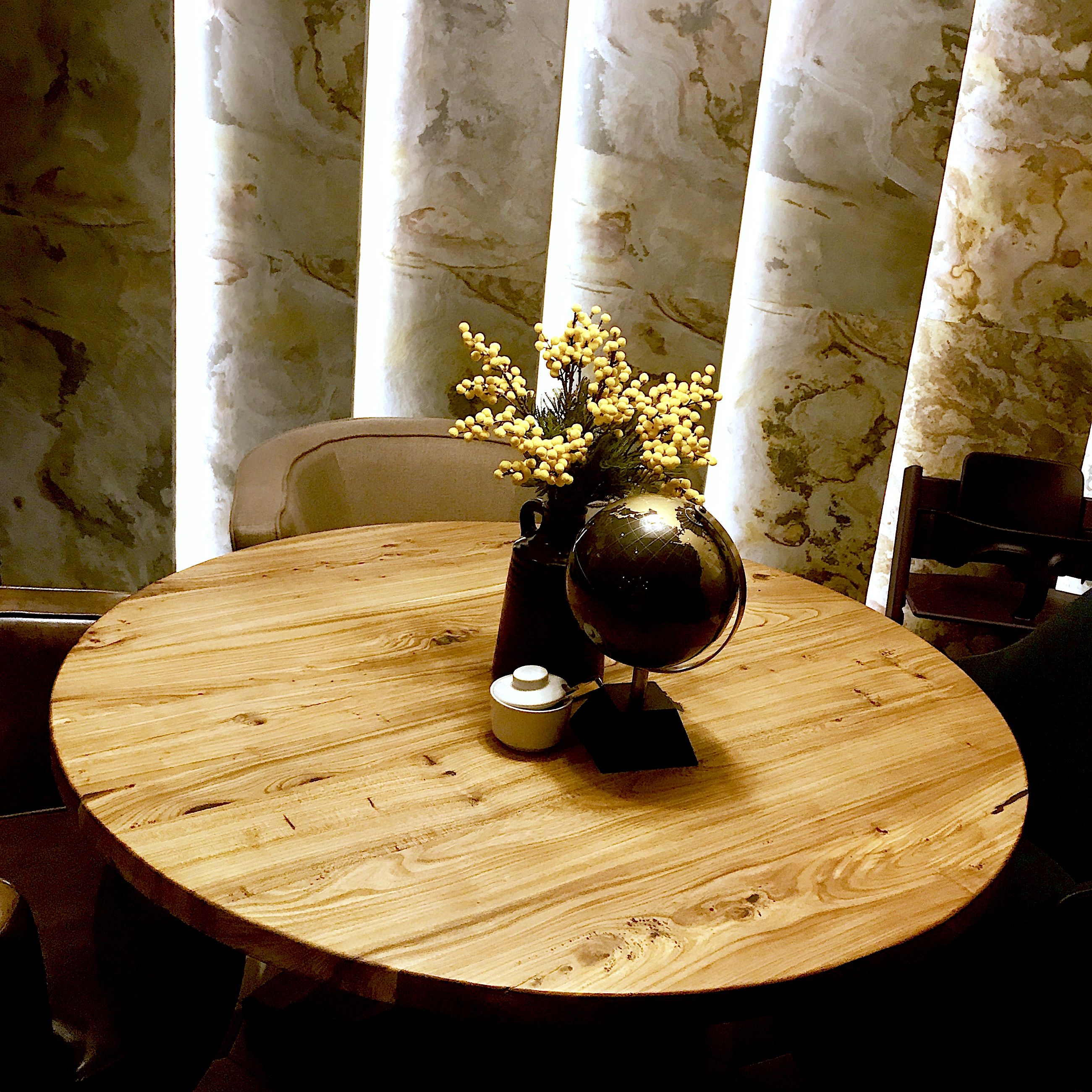 Стол из слэбов карагача, круглый, состаренный, натурального цвета с лаковым покрытием. Подходит для дома и ресторана. Тонировка в любой цвет. Цена указана для диаметра 1000мм.