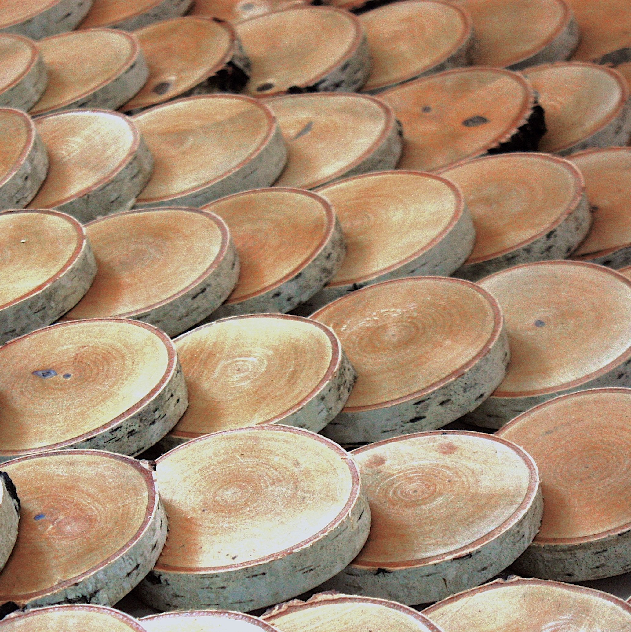 Спилы деревянные разных пород дерева: береза, липа, осина, дуб, ольха, орешник. Диаметр от 4 до 10 см, толщина 1.5 см. Стоимость указана за квадратный метр. В квадратном метре около 400шт. спилов. Спилы высушены. Без шлифовки, имеют следы режущего инструмента и незначительную ворсистость. Будьте внимательны при заказе, возможно, вам необходимы шлифованные спилы.Минимальный заказ - 1кв.м. Упакованы россыпью в мешки. Возможен выезд для монтажа на стену. Подходят для оформления уличных объектов, летних веранд, фотофонов, временных конструкций.