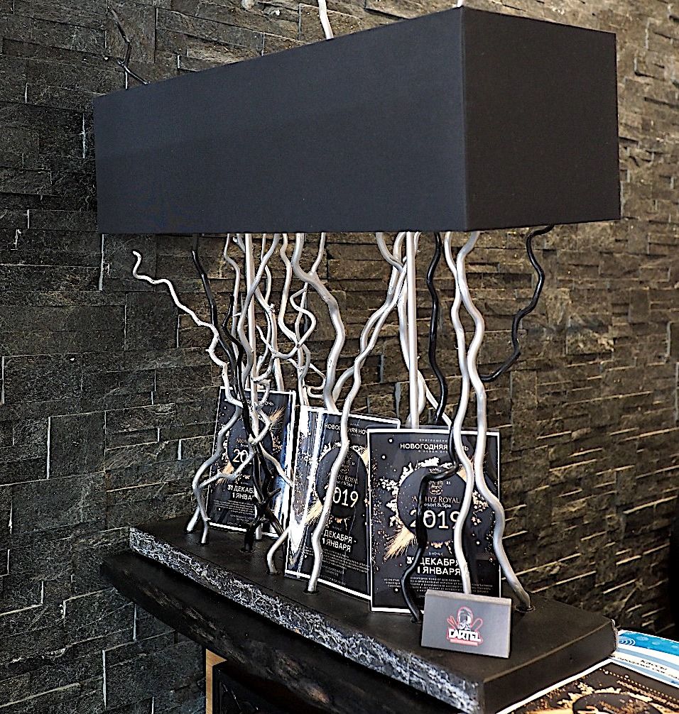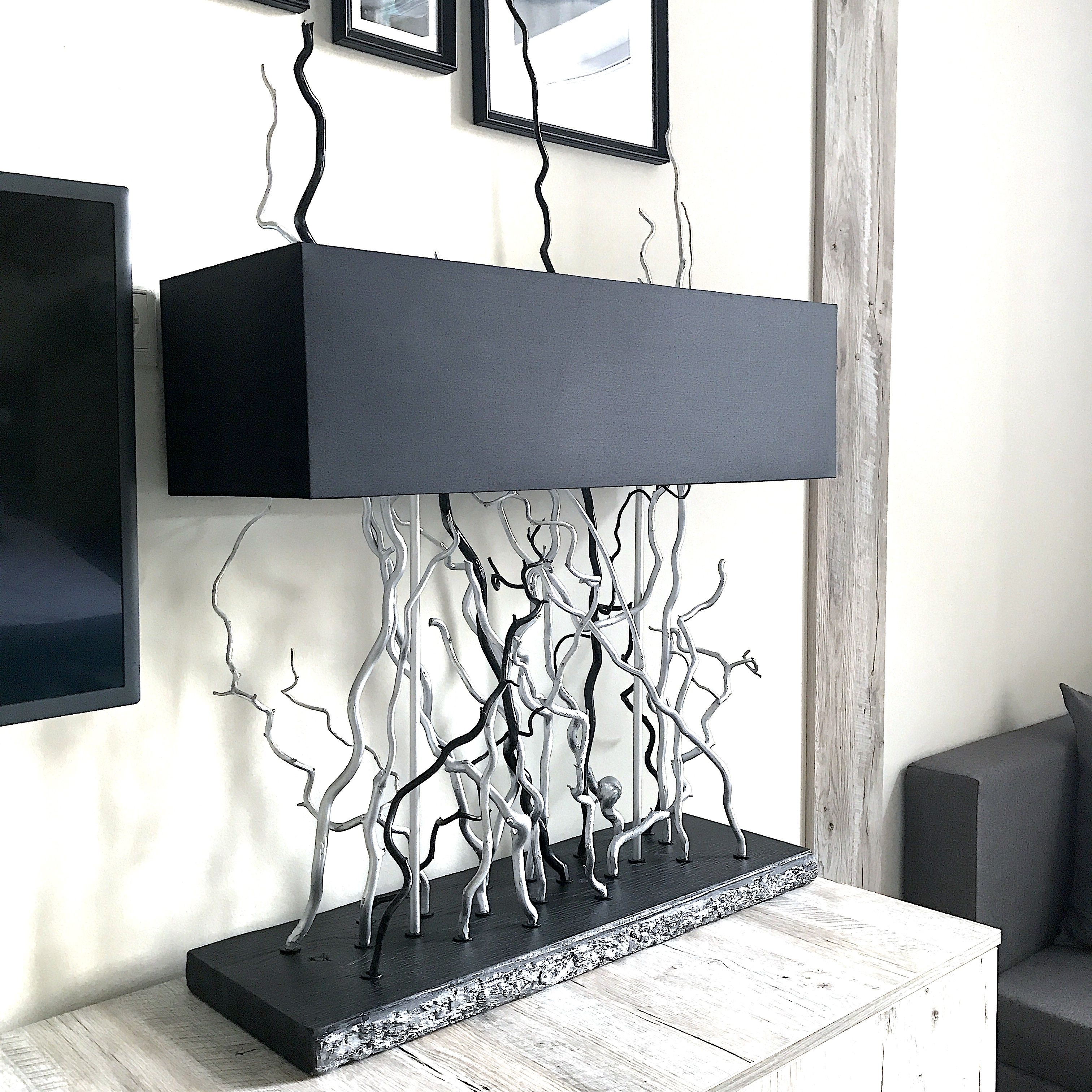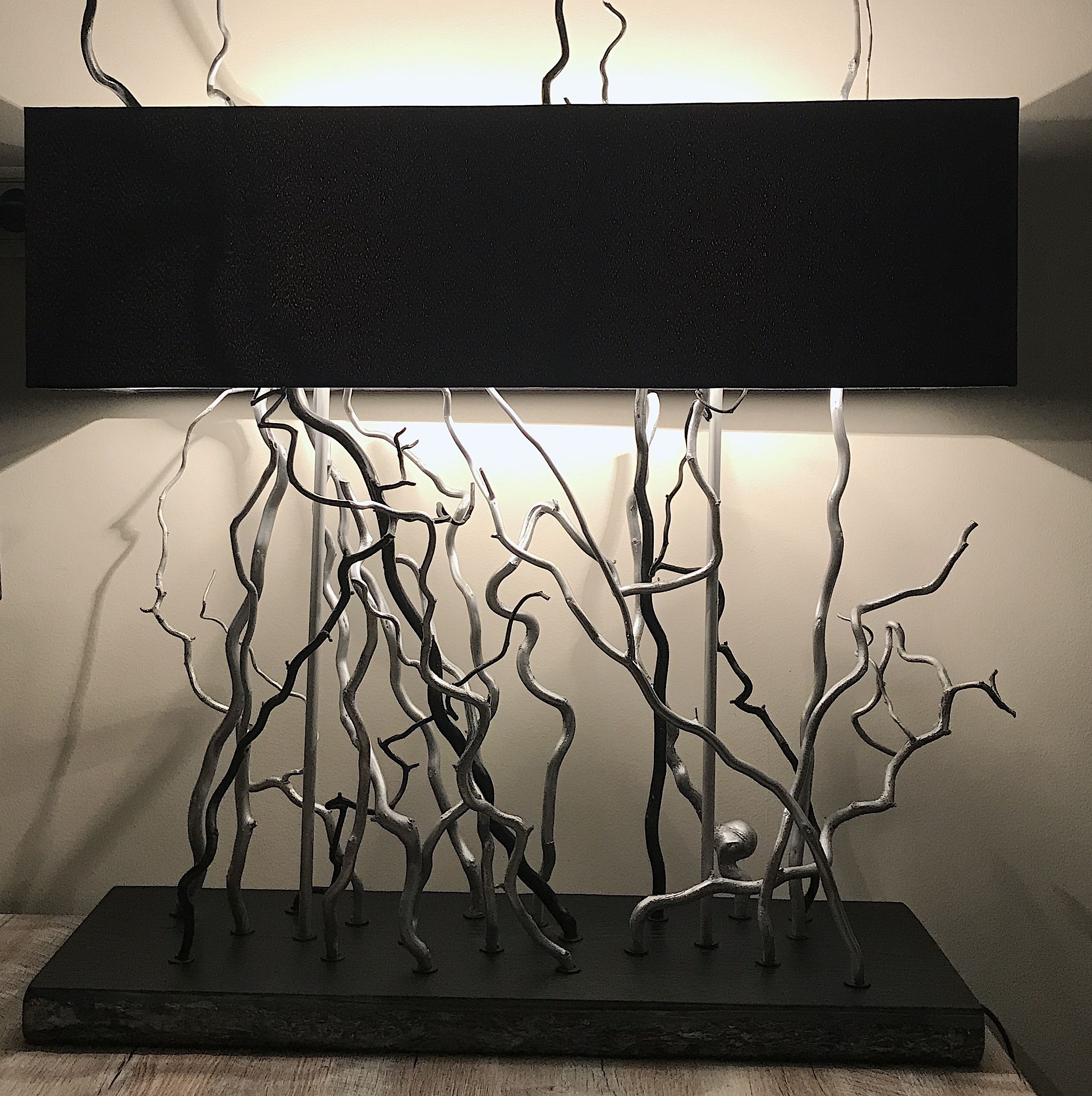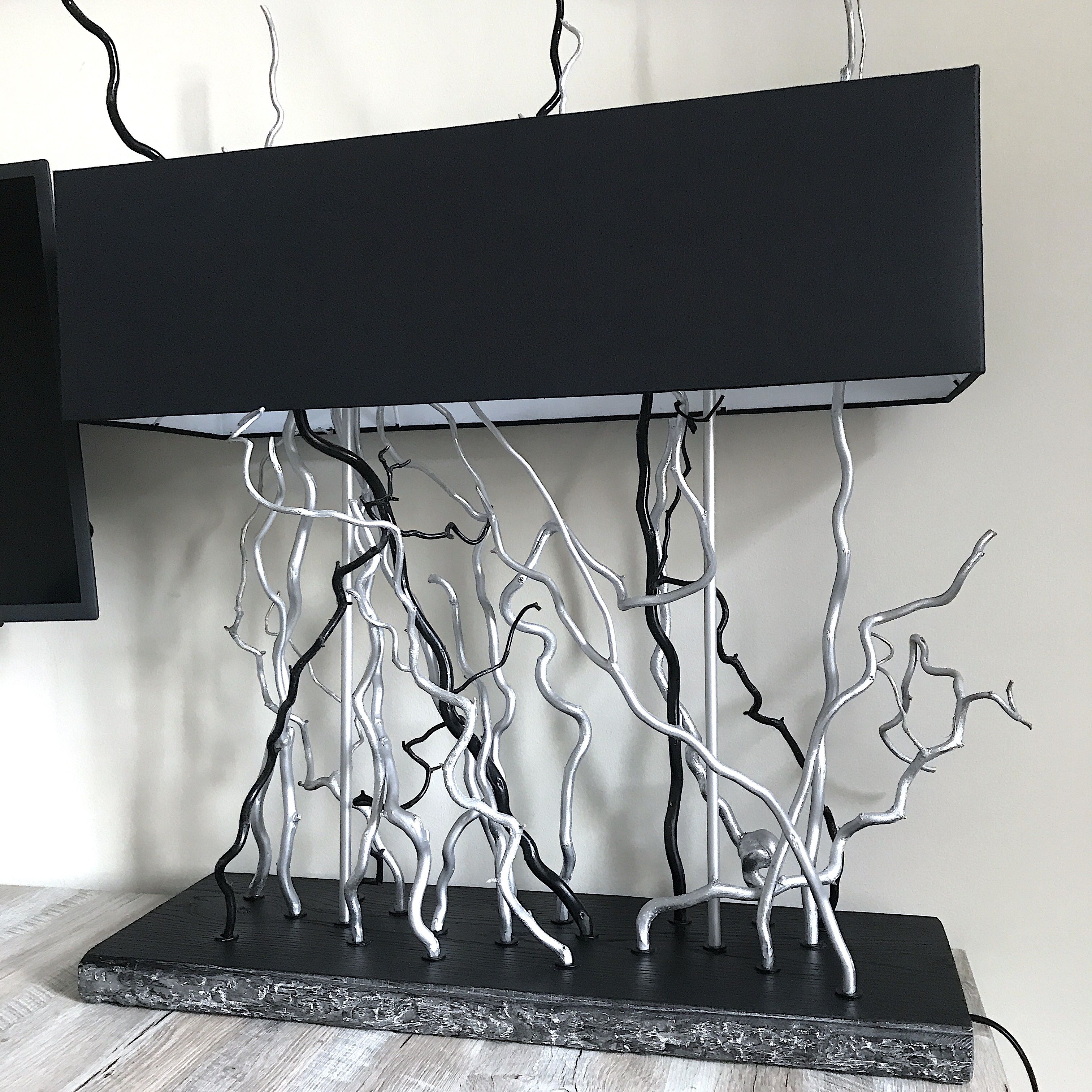 Лампа настольная с двумя плафонами уникального дизайна с использованием декоративной лозы полностью ручной сборки. Цвет абажура и декора - любой. Размеры 70х70х20см.