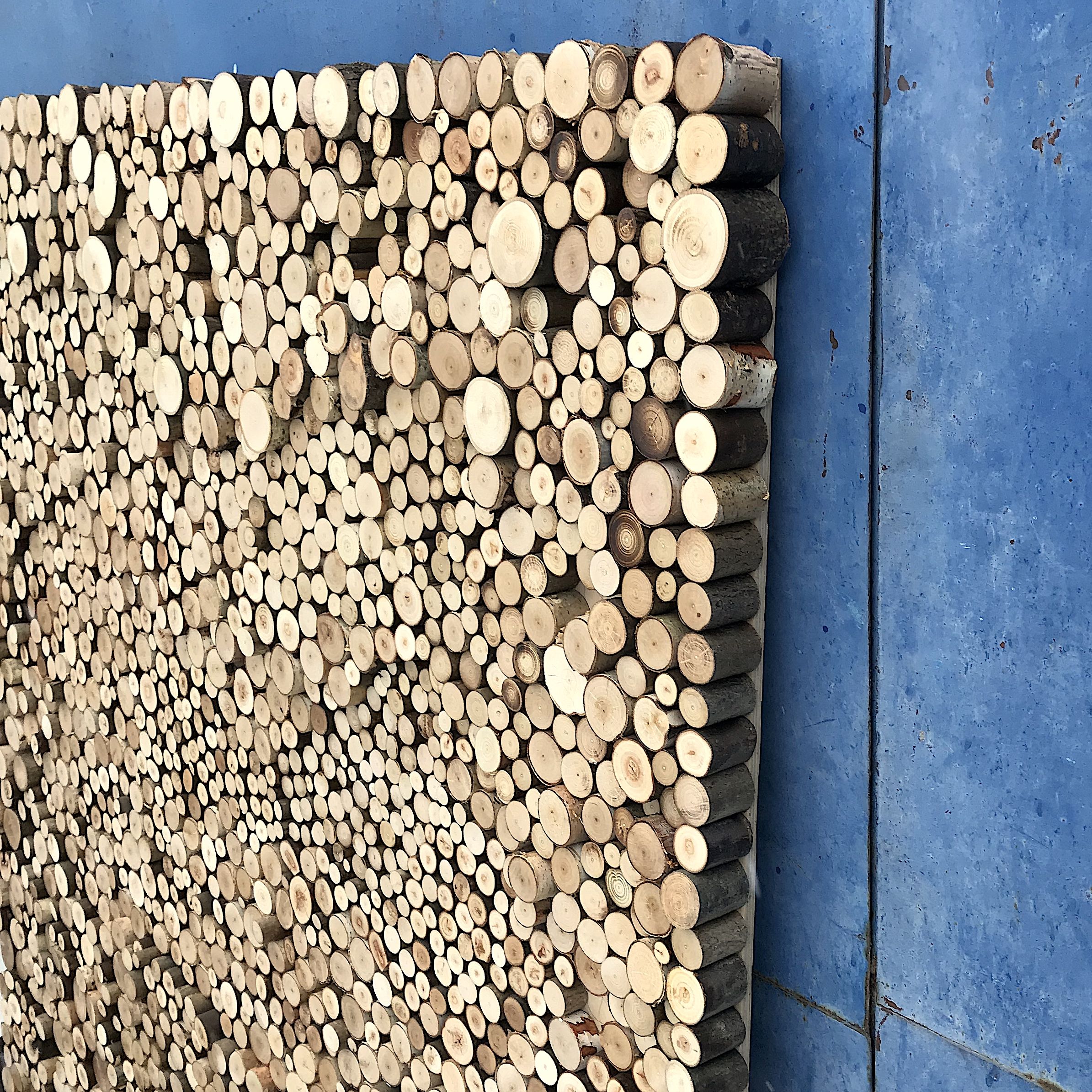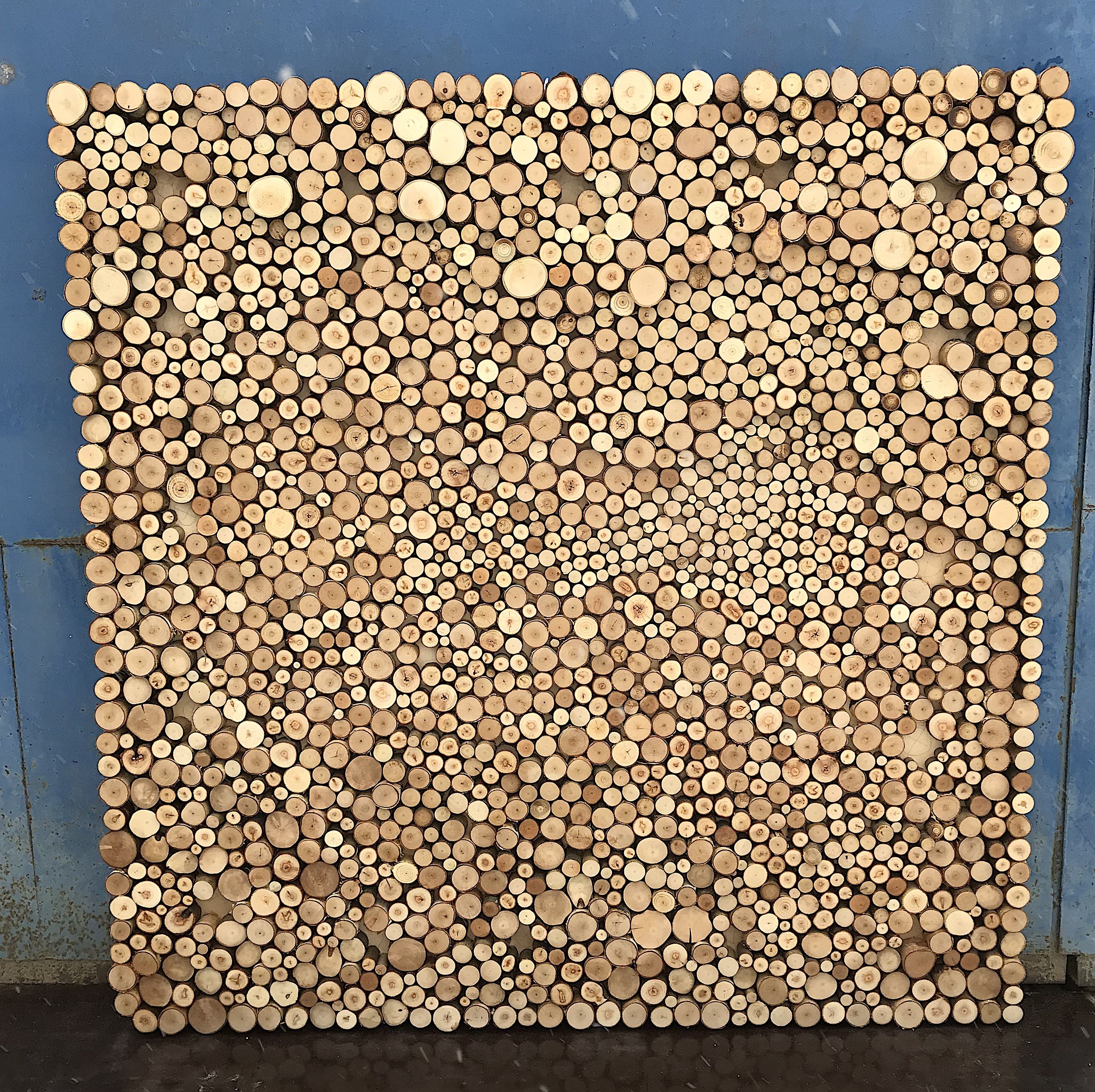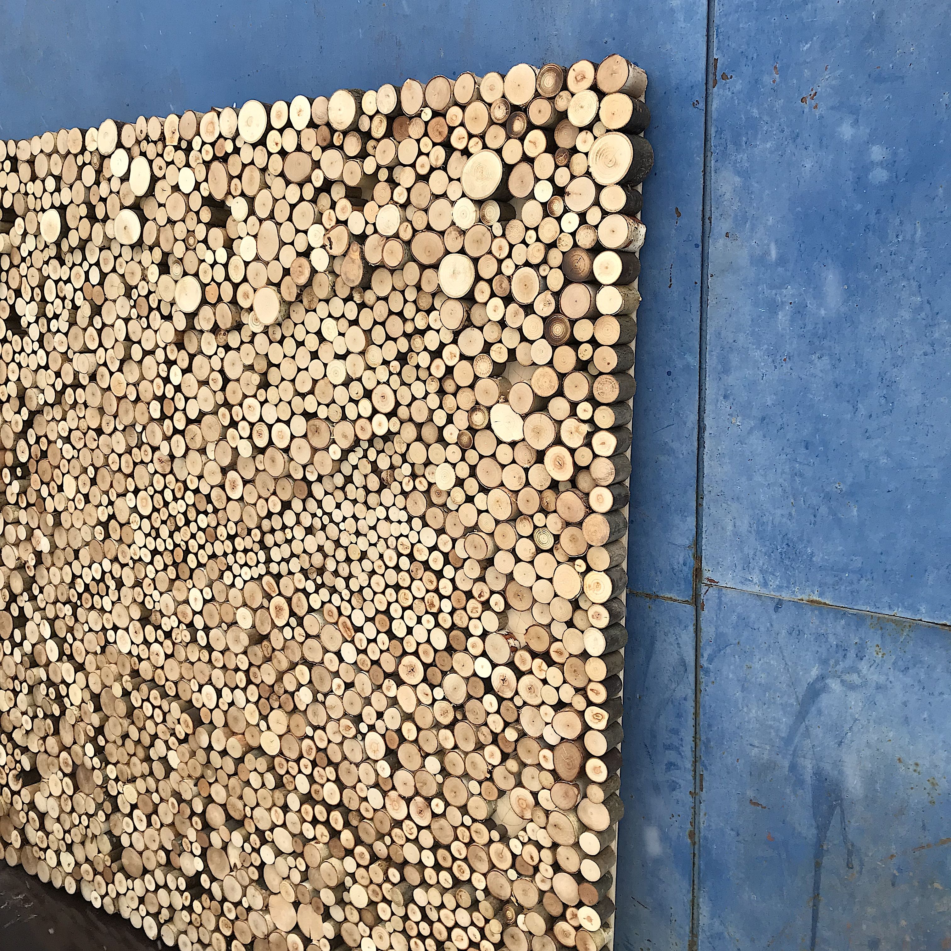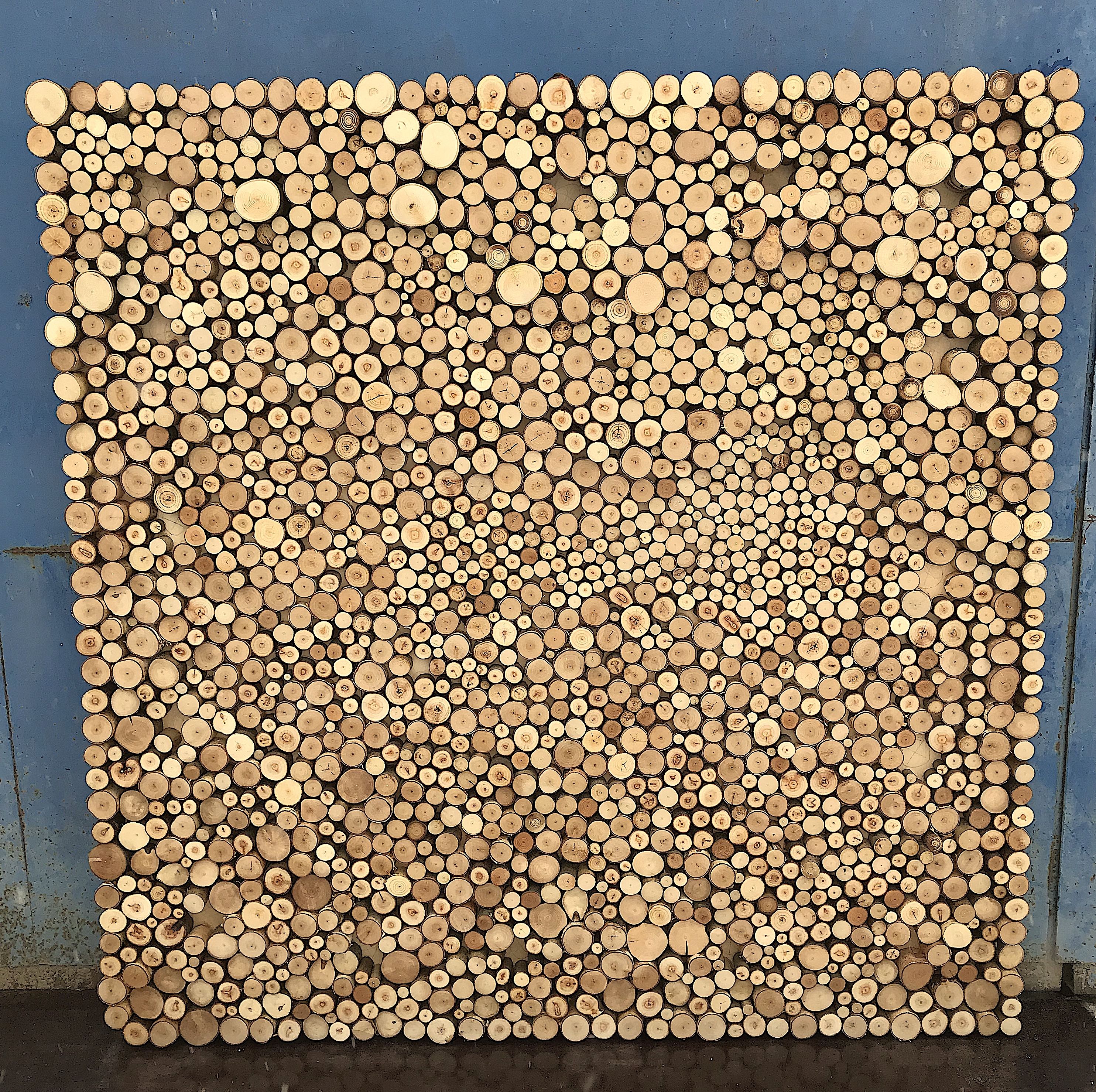 Панно из спилов небольшого диаметра разной высоты, создающих объемный эффект. Впишется в любой интерьер, очень благородно смотрится как в современной гостиной, так и на даче в спальне.