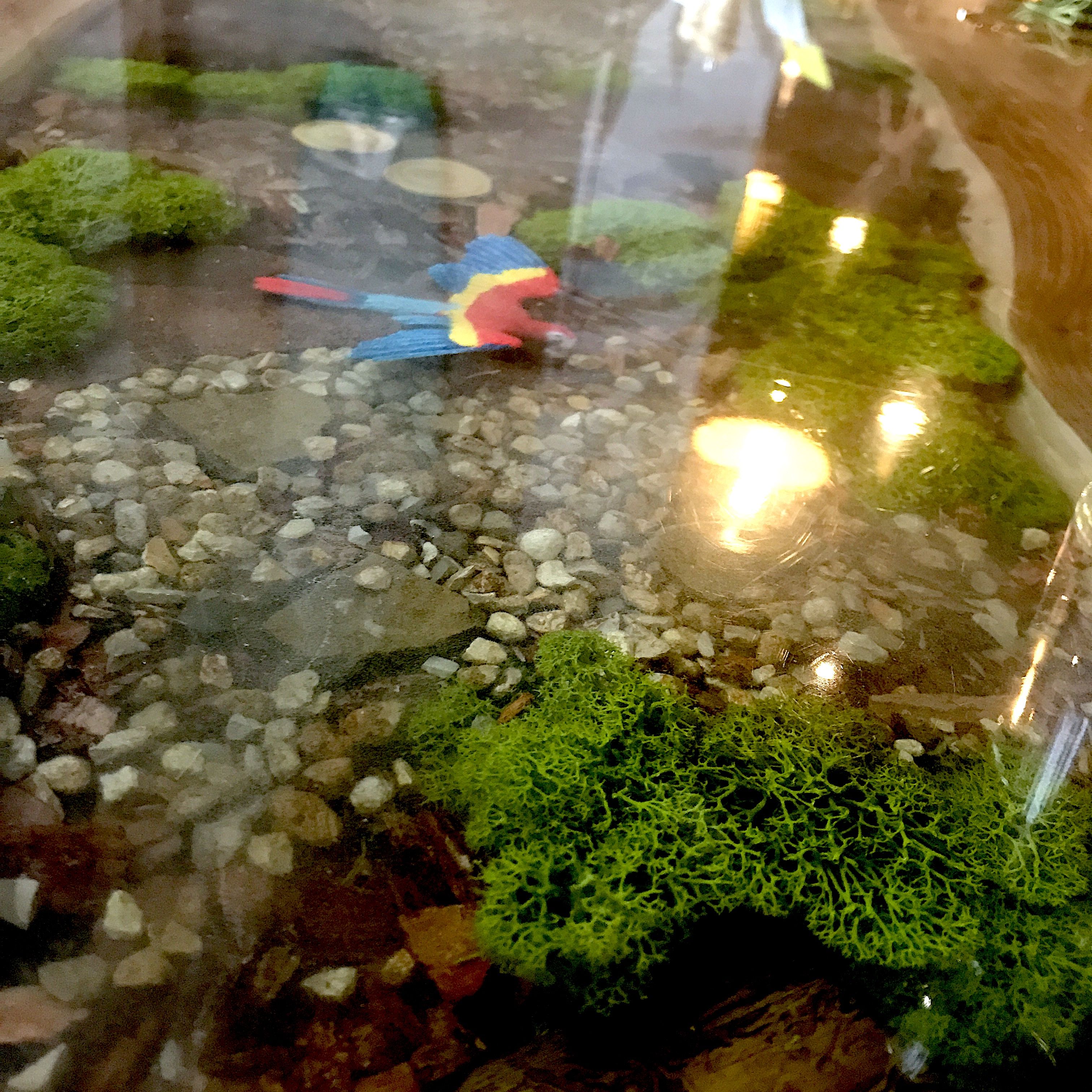 Материал заливки: Эпоксидная смола, стабилизированный мох, кора лиственницы, миниатюрные фигурки африканских животных, галька. Проект заливки делается с учетом пожеланий заказчика.