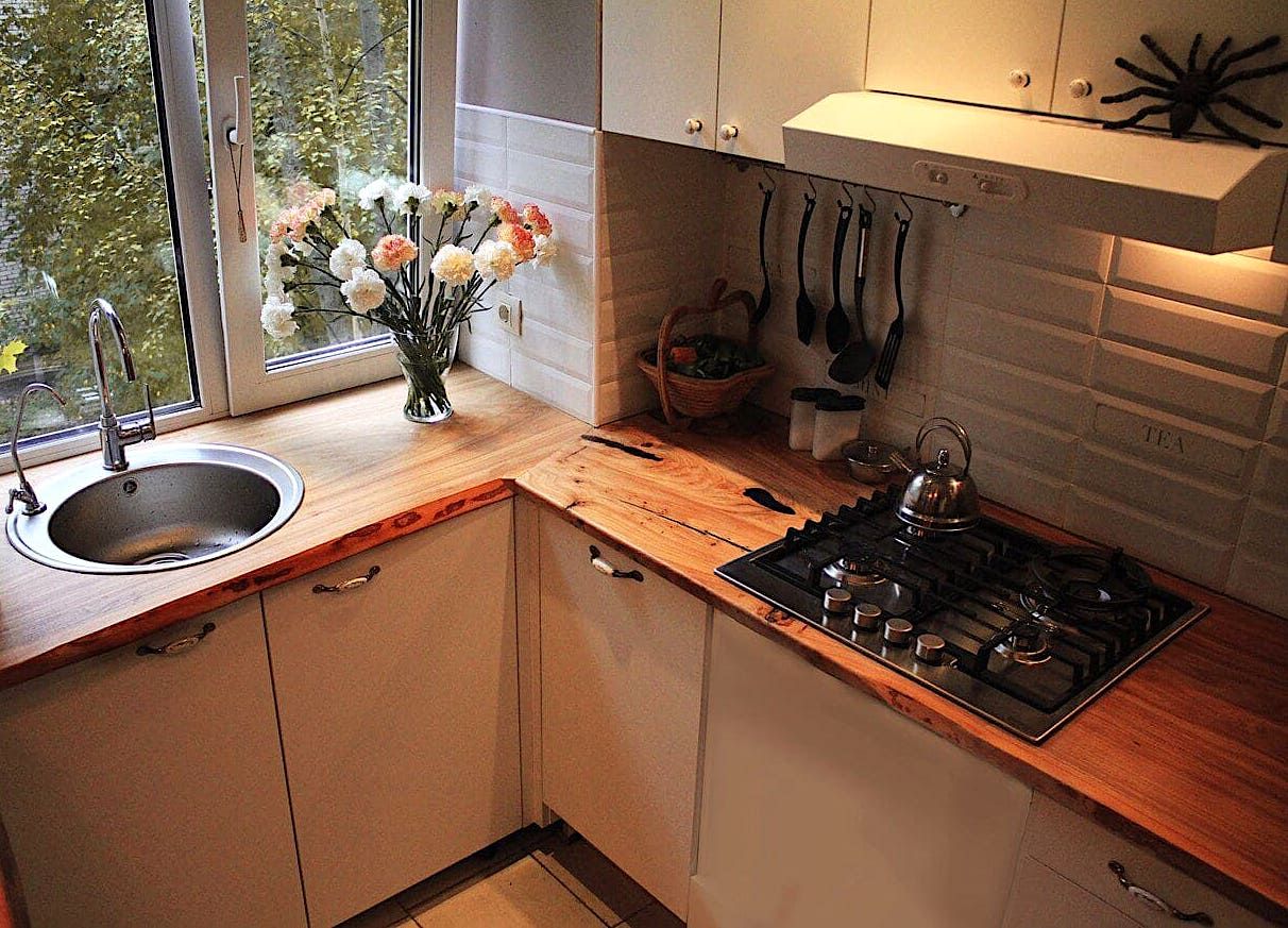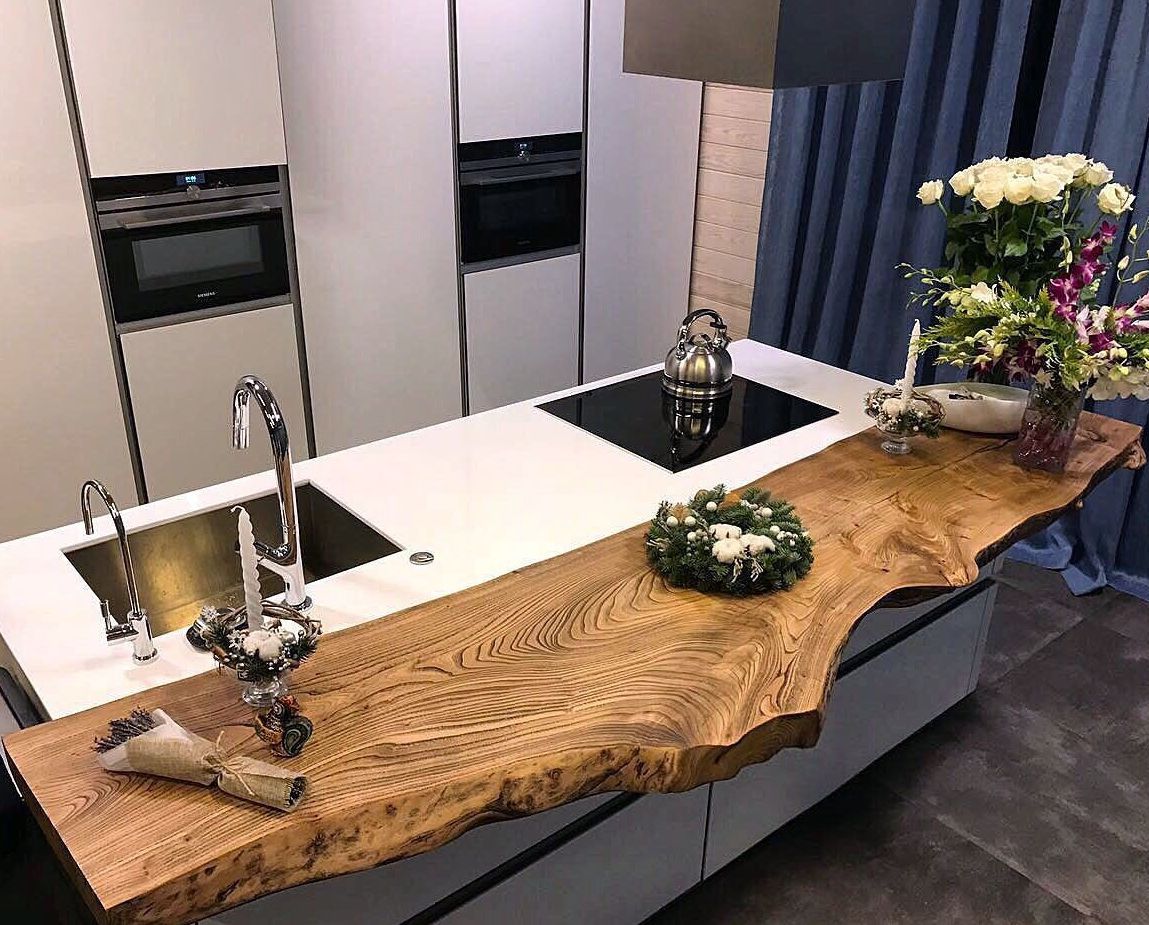 Столешница для кухни из массива дерева карагача, сосны, дуба. Кухонные островки. Водостойкое покрытие, любой цвет. Любой размер. Быстрый расчет.