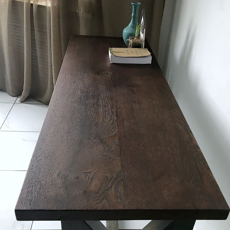 Изготовление по вашим размерам. Возможно изготовление из карагача, дуба, шелковицы, акации. Ножки из дерева или металла. Быстрый расчёт по WhatsApp.