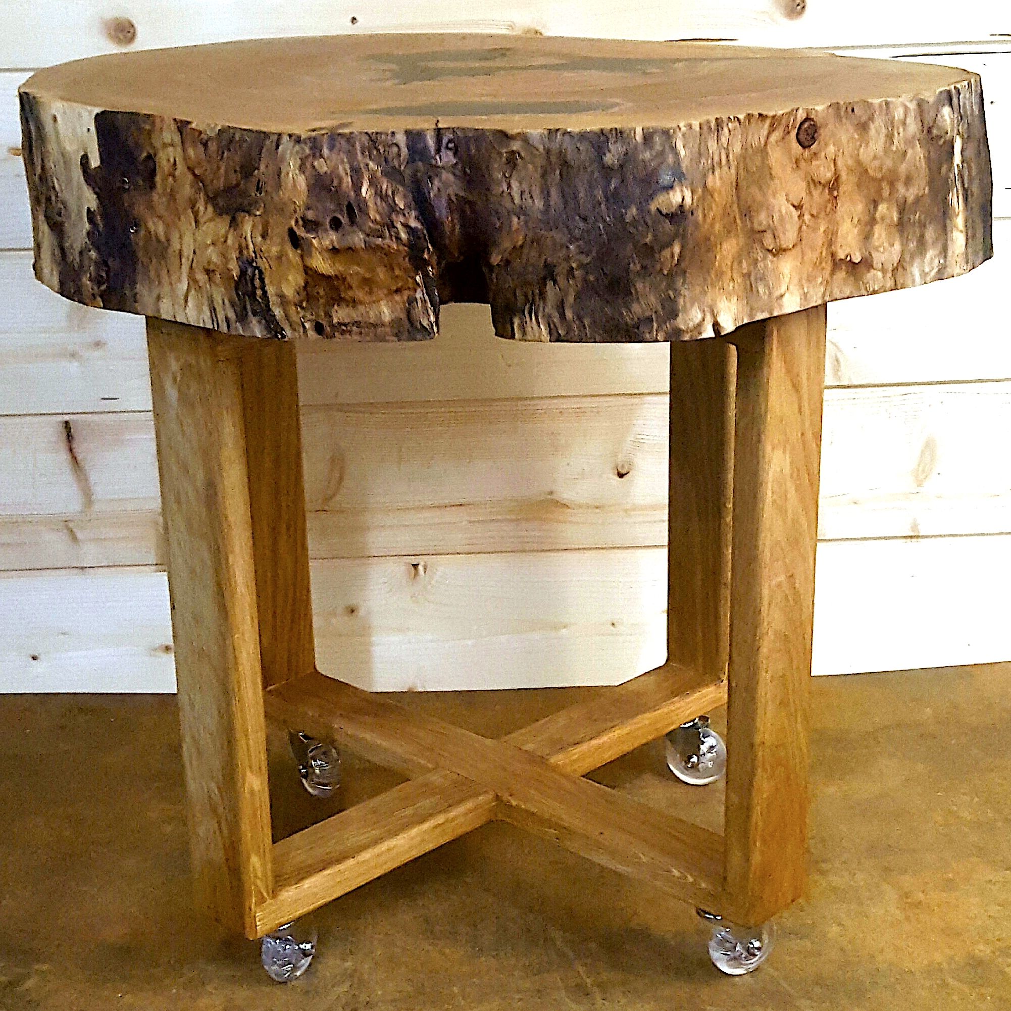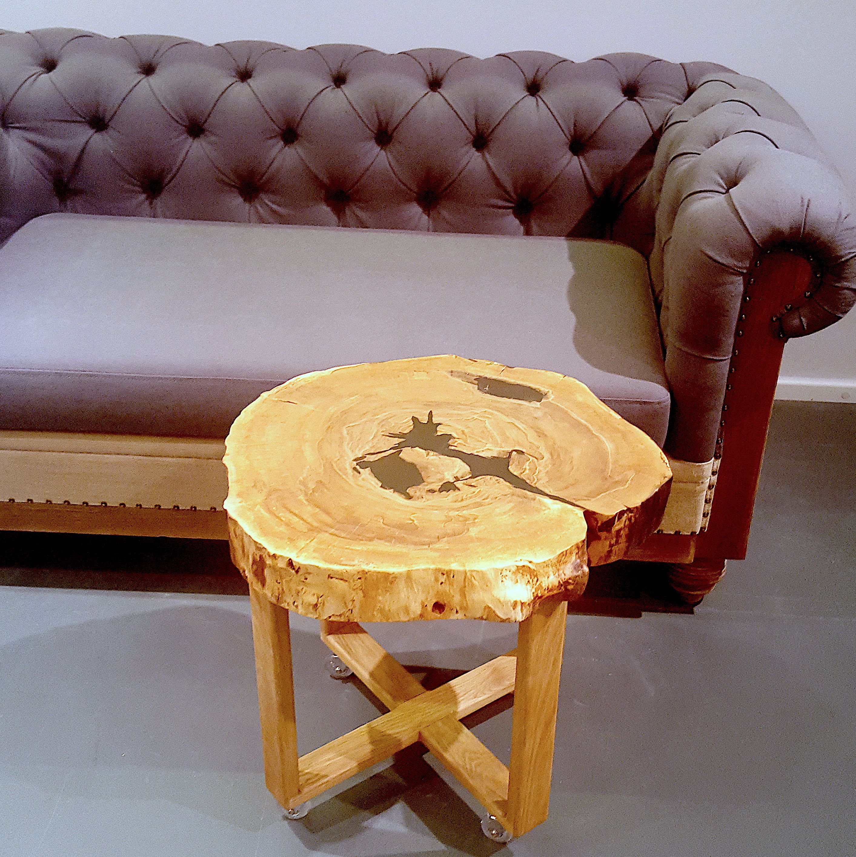 Березовые спилы и мебель из них отлично впишутся в любой интерьер. Столик из спила берёзы на дубовых ножках очень модная и красивая деталь, которая преобразит любое пространство. Ножки могут быть подобраны для любого интерьерного стиля (индивидуальное изготовление). Диаметр спила около 50см, толщина 7-8см.