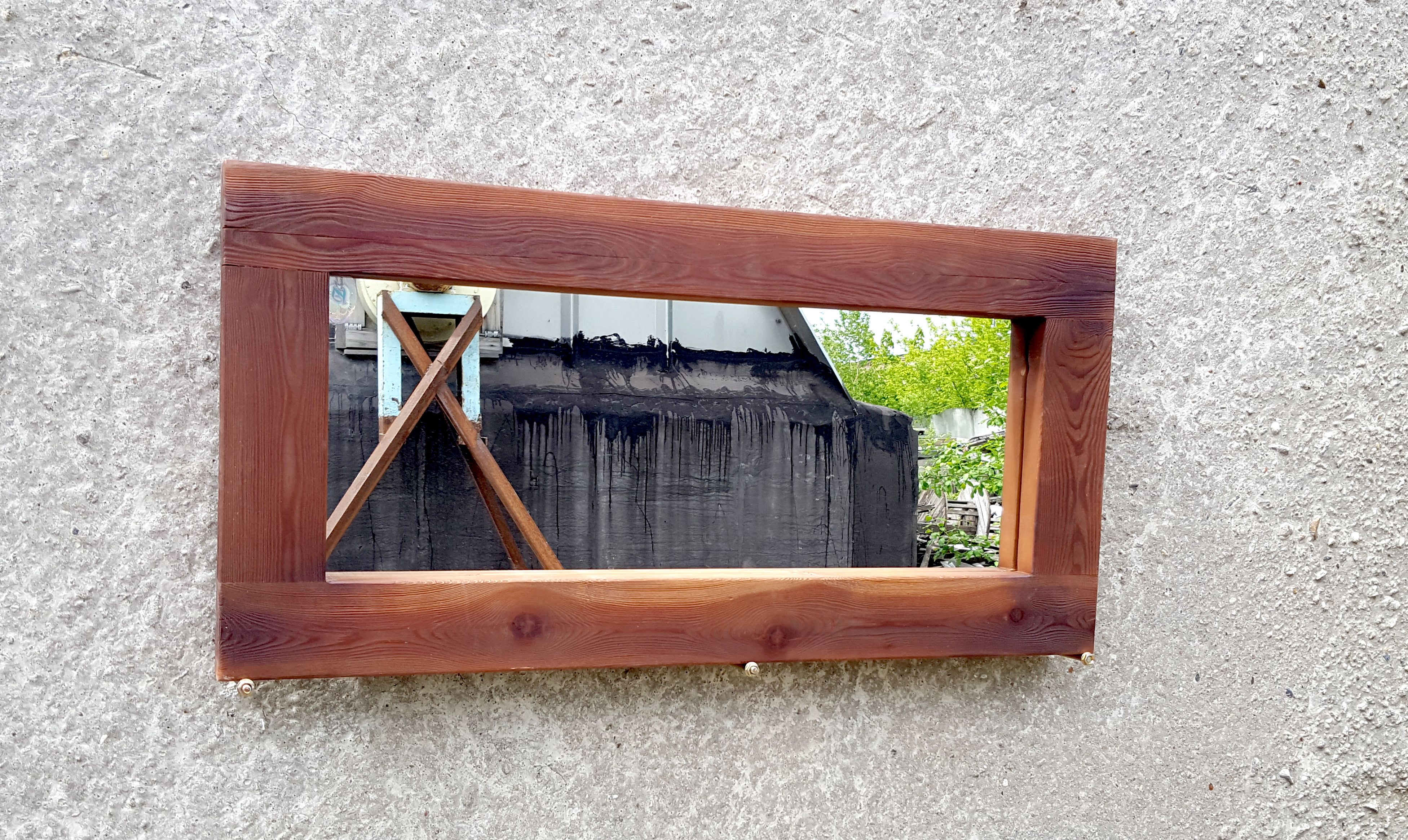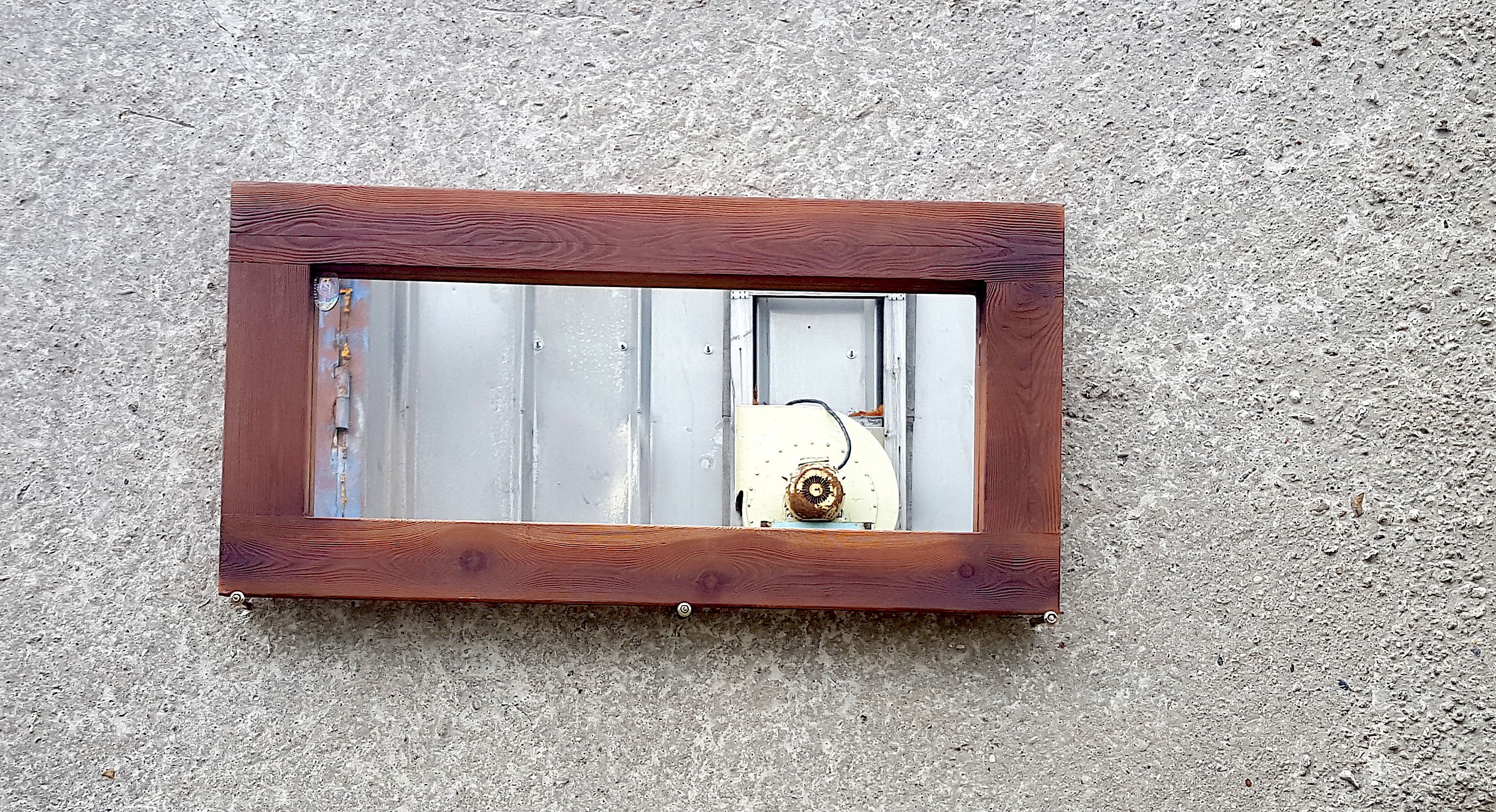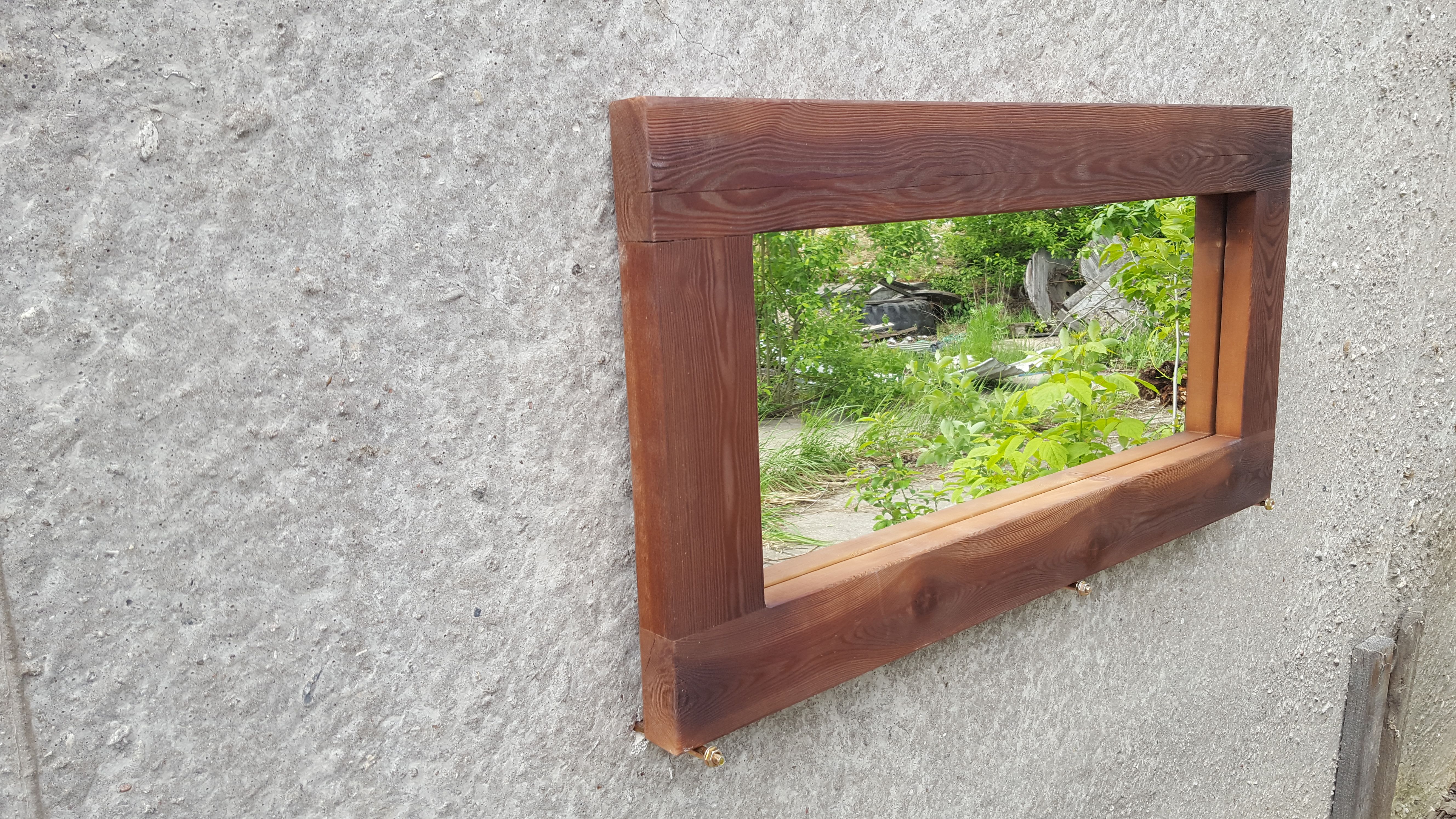 Зеркало в массивной раме из тонированной лиственницы красно-коричневого цвета в стиле "Лофт", глубокое декоративное состаривание древесины (брашировка, червоточины, ходы древоточца). На заказ возможен любой размер, любой цвет. Зеркальное полотно включено в цену.